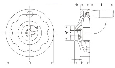 JS.101001 內(nèi)波紋手輪 顏色:亮光黑 材質(zhì):酚醛樹(shù)脂(膠木) 用途:適用于各類機(jī)械裝備的操作調(diào)節(jié) 特性:光澤感強(qiáng),外形美觀,手柄可折疊。耐高溫、溶劑、機(jī)油及其他化學(xué)試劑。鋼制鐵芯表面處理防銹能力強(qiáng)。標(biāo)準(zhǔn)化使用,安裝簡(jiǎn)便