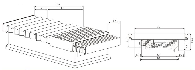 標(biāo)準(zhǔn)護(hù)罩使用在機(jī)床高立柱和大型機(jī)床長導(dǎo)軌上,結(jié)構(gòu)合理,行走均勻,堅固耐用。