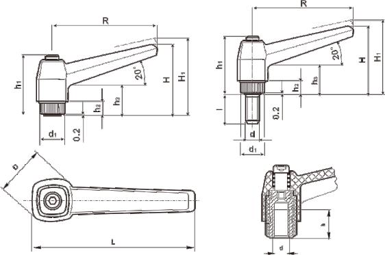 特性:手柄體部分可以垂直拉起,并沿裝配軸旋轉(zhuǎn)至其他角度后落下,從而讓使用者在增加杠桿扭力的同時,方便?课恢,更加有力的調(diào)整操作